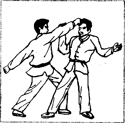 我在其锋刃将至之时突然向左前侧偏闪,然后用左手由外向内拍