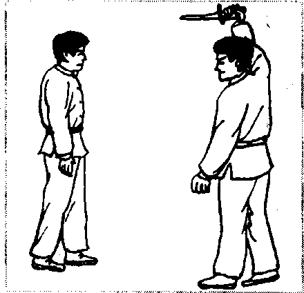 歹徒右手正握匕首(刀把在虎口侧)向我劈刺(图3-8)。
