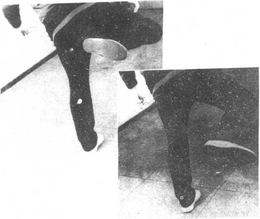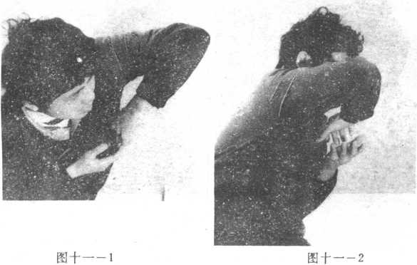 1-关肘:屈臂抬肘,经胸前向异侧旋臂横格,力达前臂。(图十一1、图十一2)2.碾肘:屈臂抬肘外翻,经侧向前碾压,力达前臂及肘 尖。(图十一一1、图十一一2)图十二一2图十二一2图十二一1图十二一1图十二一2图十二一2图十二一1图十二一1〔四〕腿法1.撩拐腿;一腿屈膝提起向后撩勾,力达脚后跟。(图 十二一1、图十二一2)