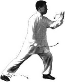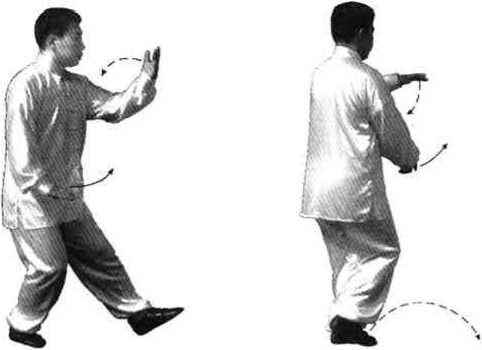 要点:后坐时,上体保持正直,命门处如同有人用绳后拉, 双手相对于身体不动。