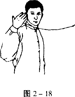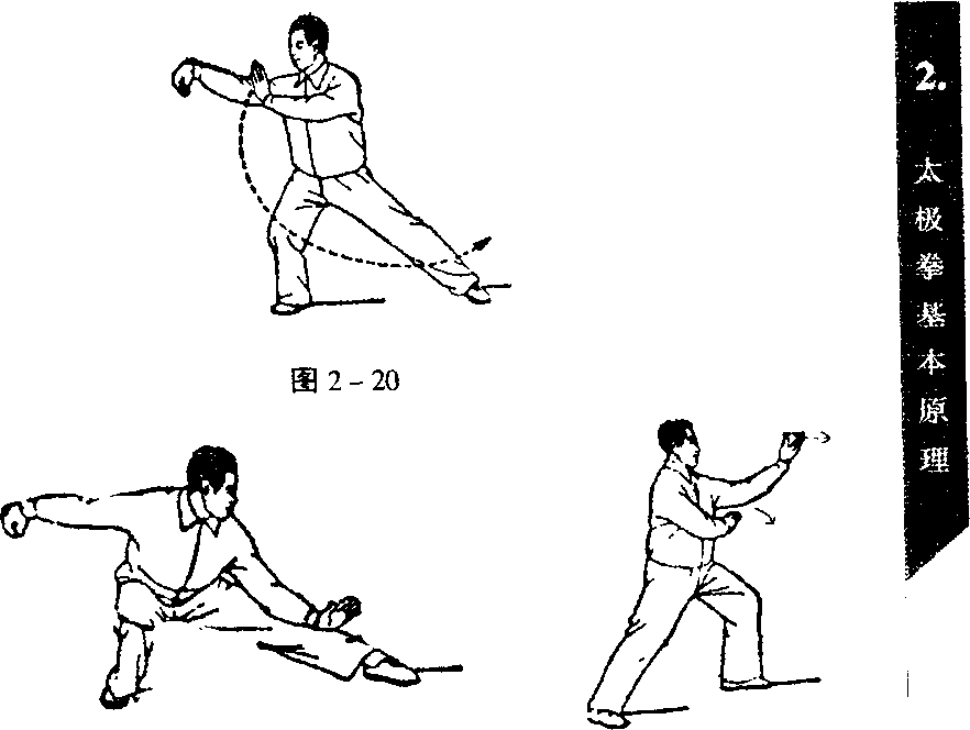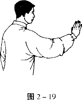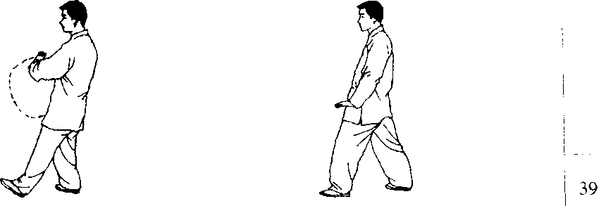 (7) 图 2-23图 2-23图 2-24图 2-24搂手:一掌经腹前弧行由异侧髋前向同侧髋前划弧(见图 2_23、2-24)。
