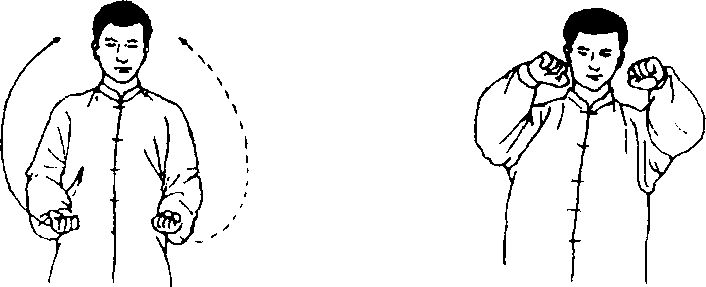 (3) 图 2-40图 2-40图 2-4L图 2-4L双贯拳:双拳经两侧臂内旋向前弧行,两拳眼相对合击,两 拳之间与头同宽(见图2-40、2-41)。