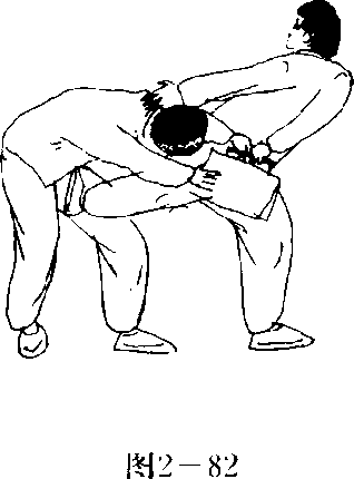 掌推击贼面(图2 — 81)。接上动作,我用左脚踹右贼裆(图2- 82)。
