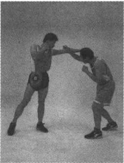 图4-1-13格挡。如格挡过早对手可以改变拳法格挡就做不成了。