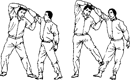 在与歹徒格斗当中头发往往会被歹徒抓住。虽然歹徒没有直接用拳脚攻击但其对我的抓发已使我的人身安全受到侵害在这种情况下首先要扣握歹徒抓发之手而后可根据其站位做出反击招法。