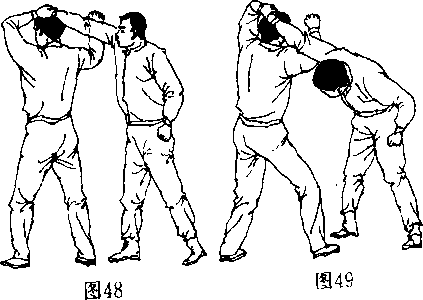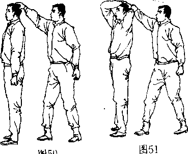 (1)我立即将双臂上举两手扣握住歹徒右手腕(图51)