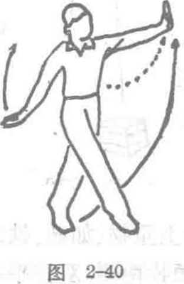 7 正踢腿双手侧平举立腕竖掌掌心向外双腿并步直立,挺胸收腹,直背目视前方,上身保持正直左腿向前上一步随之腿挺膝足尖勾紧用力向上(自己的额前)踢起(图2-39)图2-41图2-41
