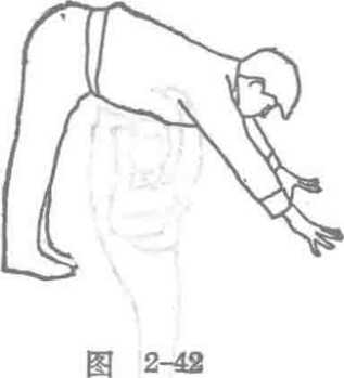(3)铁牛耕地身体俯卧双臂伸直十指撑地重心后移,臀部凸起,头部向下向前弧形前伸,重心前移,两臂由直到屈,再由屈到伸继之头再由前上向下向后弧形缩回两臂由直到屈再由屈到伸重心后移还原到开始的动作(图2-42) 、