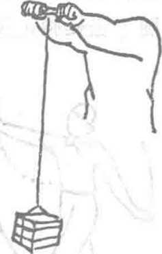 (4)缠卷重物用一绳子一头系上重物(如砖、铁块等),另一头固定于一短棒中间两手分握短棒两侧,双臂平举左