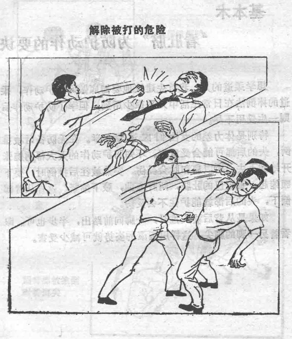 被殴击时也是一样9若正面受到对方的拳击当然受害也越大如何来化解对方的攻击呢?当对方挥拳过来时,你的颈部向右或向左斜后弯即可总之要避开这样第一拳的冲击就变小外行人只有第一拳较可怕9第二拳以后你的眼力也渐习惯架势也较稳9就没什么好怕的。第一拳能解消的话等他第二拳过来抓住他的手臂勒住关节就容易让对方投降