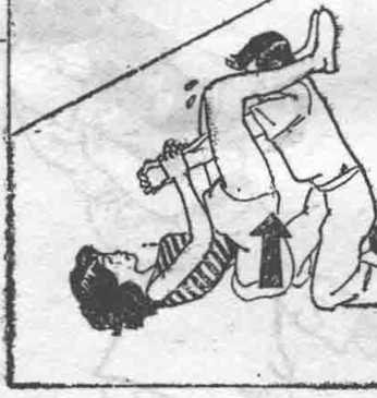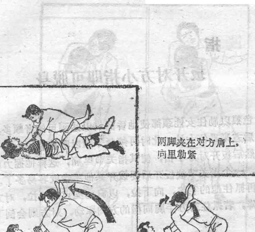 若是被色狼骑在上面时,可牢固的抓他的双臂,然后两脚上升跨于对方肩上然后两脚牢牢地勒住对方,臀部向上这样色狼就会因手肘疼痛而投降了。