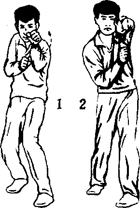 御对方用直、摆拳击头,也可用于防御对方用正蹬、侧踹等 方法攻击我上盘。双搂防主要搂抓对方攻击拳的腕关节或前 臂,也可搂抓对方攻击腿的小腿或踝关节。左侧双搂用于防 守对方左拳和左腿的攻击比较有效。