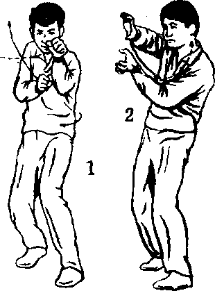要领:转体、夹臂、扣掌要协调、有力