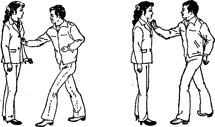 解7左脚向前上一步脚尖里扣同时九右手迅速抓握对方右拳紧拉左手握拳屈肘上提缠绕左臂后再向对方