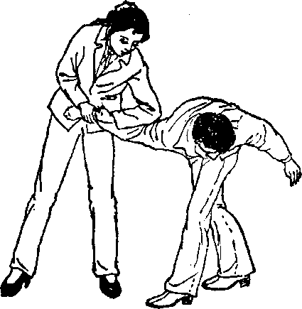 图4—58图4—58肘关节处猛力顶撞逼使对方左臂旋拧超出正常活动范围痛疼难受而仰跌(图4-59)。