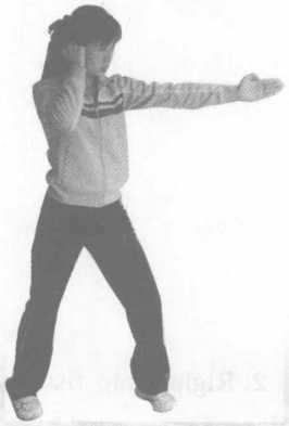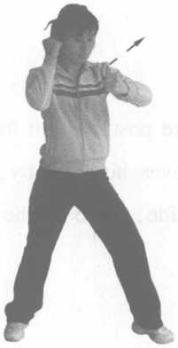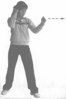 4 推掌实战姿势站立推掌动作运行路线同直拳唯独推掌时要立掌向前或向前上推出力达掌根(图3-21)。