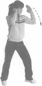 图3-22图3-225撩阴掌实战姿势站立一脚用力蹬地,转胯扭腰身体向攻击目标方向拧转一手小臂内旋下落直臂前摆或后摆手形为撩掌(或扣手)向目标撩击,当撩击到目标时五指自然内扣捏紧(图3-22)。