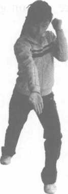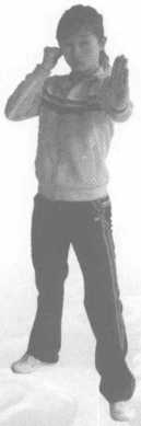 2 右上勾实战姿势站立左脚上前半步,左拳上架,右拳由下向上击打对方下颌或胸腹部位力达拳面拳心向内(图313)。