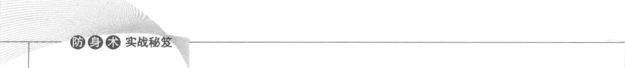 凡遇到这类情况时首先就是要保持好自己的身体平衡不能让恶徒将你拖倒。一旦被拖倒就意味着更加危险!在调整好自身平衡的同时必须扭转头部以保持呼吸的通畅这几个动作和猛力肘击应一气呵成。