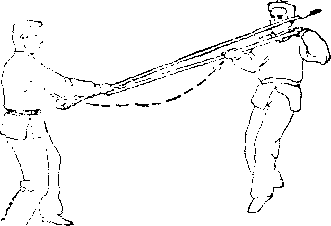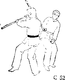 尖划一弧形飘越过乙的棍面, 部击落(图C -52)。厂尖划一弧形飘越过乙的棍面, 部击落(图C -52)。厂当右脚落地时,棍梢向乙的头当右脚落地时,棍梢向乙的头