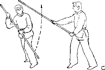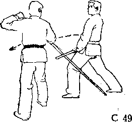 棍梢从自己右侧向下、向后扒开甲的棍头(图C—49)。