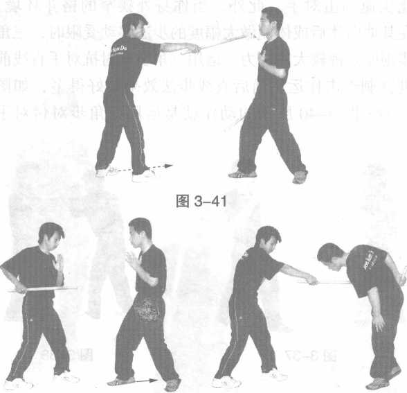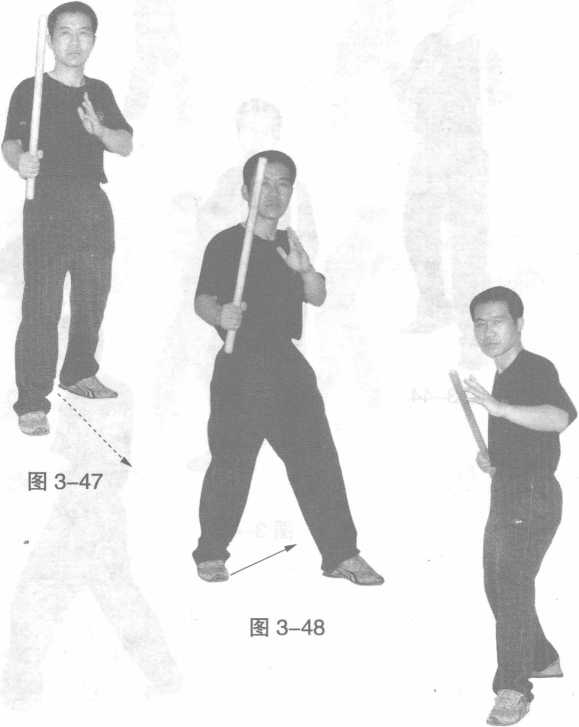 环绕步的作用与三角步基本相同,但环绕步动作 幅度较大,不适合于狭窄空间内的运用。