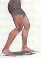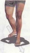 离地面以前脚掌撑地两脚的肌肉要放松(图2-1-4)。两脚前后距离一般是前脚的脚跟至后脚的脚尖之间基本与肩同宽具体的宽度可根据自己的身高、腿长来确定要避免过宽或过窄(图2-1-5)。如果距离过宽身体重心虽然稳定但是两脚的移动速度会受到影响导致动作迟缓。反之距离过窄尽管步法灵活了但会影响身体重心的稳定性。所以保持合适恰当的距离至关重要°同时要注意两脚切忌站在同一条直线上(图2-1-6),以避免实施进攻或防守动作时身体侧倒而失去平衡。