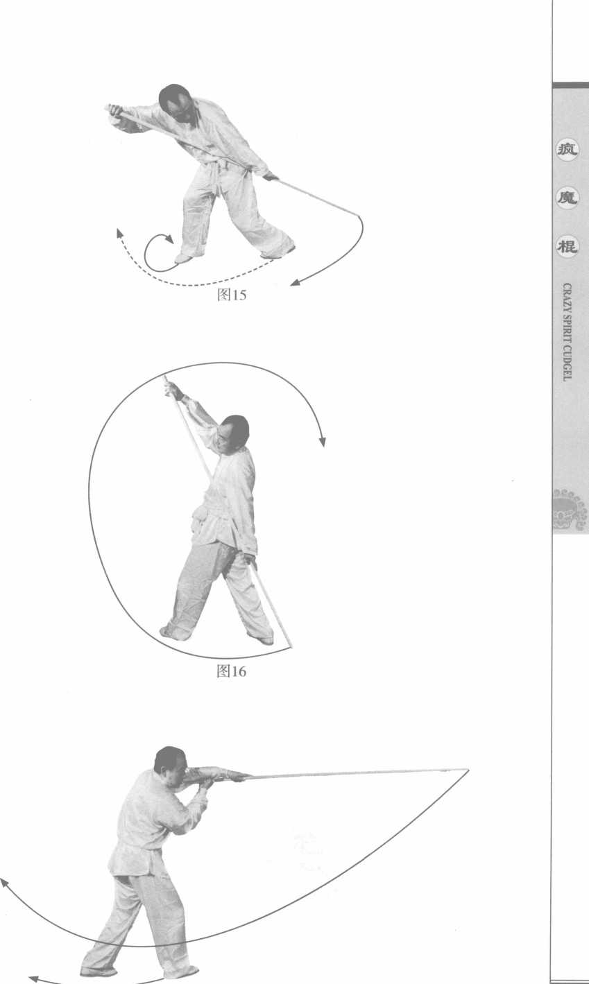 疯魔疯魔CRAZY SPIRIT CUDGELCRAZY SPIRIT CUDGELStep backward right foot, block cudgel and hold up behind body, look forward. (Fig 18)