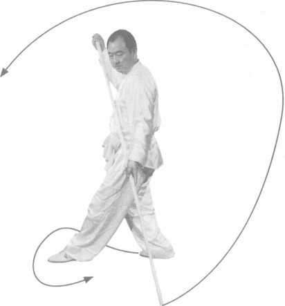疯 魔 棍 CRAZY SP【R 一 T CUDGEL疯 魔 棍 CRAZY SP【R 一 T CUDGELRight foot steps forward with toe inward, turn body left and left hand slides, hands hold cudgel to point from left to right, force to cudgel-tip. (Fig 76)