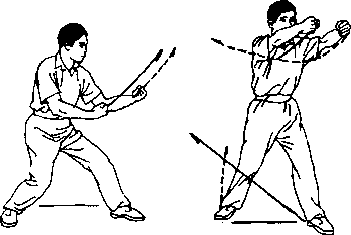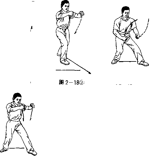 拳下落于腹前两臂弧屈两拳心朝后。眼看前下方(图2—181)
