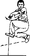 (1)左脚向西北侧摆起右脚蹬地右后跳起身体右转。腾空时两臂屈肘于体前交叉左手在上右手在下两掌心均朝下,眼视正南。图2—191)