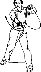 右脚向前上步成双弓步,同时两拳左下划弧后右上提撩两肘略屈右拳胸高拳心朝右左拳腹高拳心朝上。两眼平视,(图2-27)