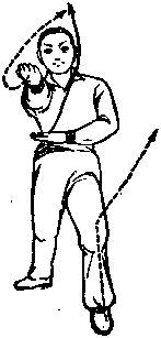 拇指尖点地两脚用隹匏本人脚长的五倍两勾手变掌左手,