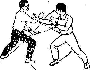 (1)乙右腿前落成左弓步右爪变拳冲击甲面部。甲右拳变掌直臂前伸,随之体伸直前扑地左掌撑地。(图-3)
