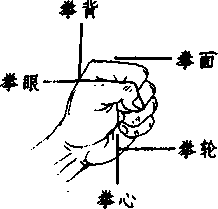 1.拳:四指并拢卷握,拇指紧扣食指和中指的第二指节(图 一)。
