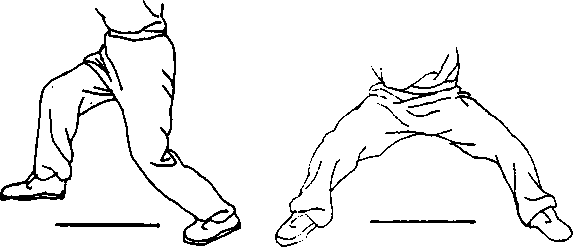 2- 马步:两脚左右开立,脚内侧的距离约等于身长的一半。脚