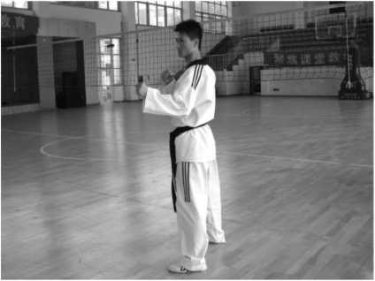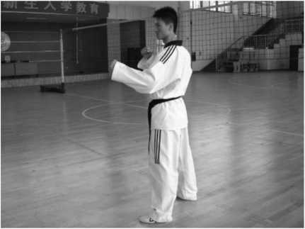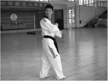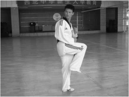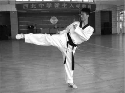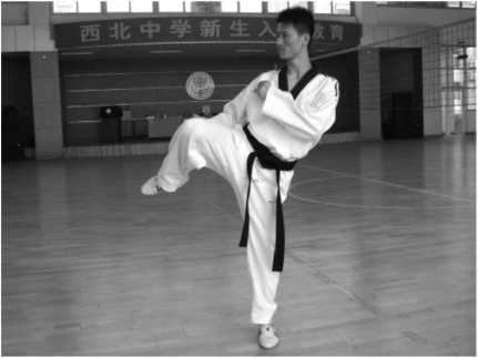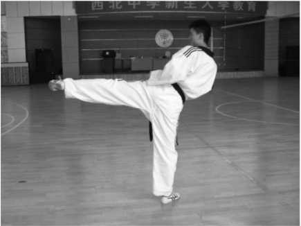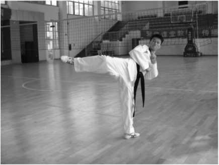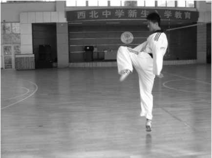 图2 -119 重心向前在左脚上,右 腿迅速抽膝