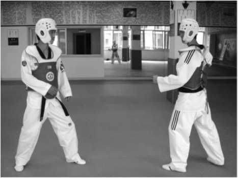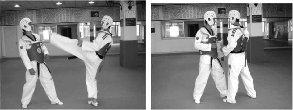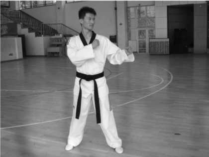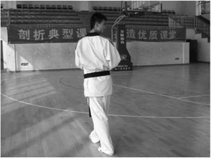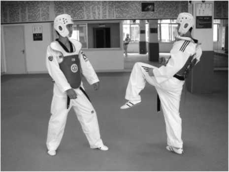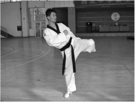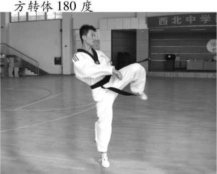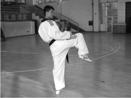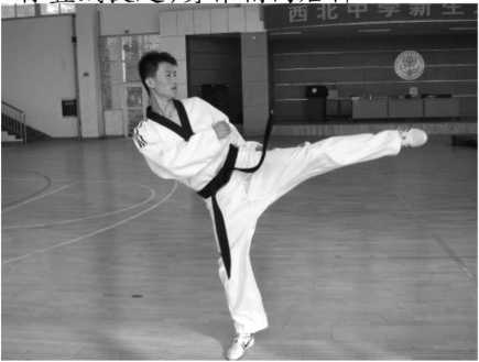 图2 - 128 使用左脚横踢技术击 打目标,右脚为支撑脚