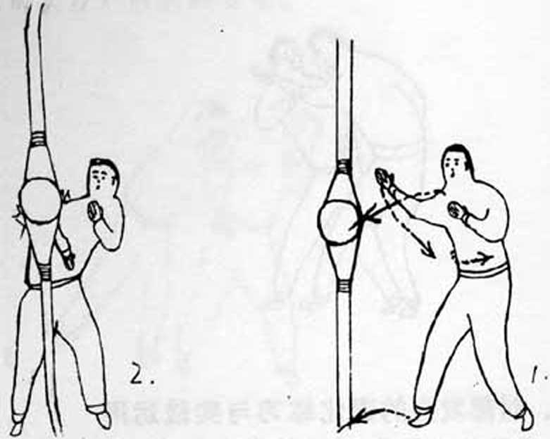 右实战式置于速度球前右脚突然前刺一步同时肩向速度球猛力弹抖将速度球撞出疾速撤步。20次—20―组左右式交替练习。3沙包练习法右实战式置于沙包前右脚突然前刺半步同时右肩向沙包猛力弹抖撞击疾速撤步20次一组左右式交整练习。4肩部的实战技法运用(见图解)