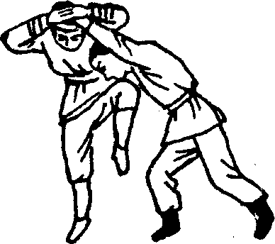 要求:下蹲要顺其自然,贴敌身后撞击敌面门要迅猛有 力。