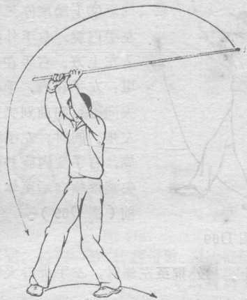 要点:左手向后时,身体随之右转,使棍贴身而过,同时 手腕要灵活.
