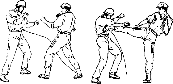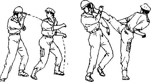 L动作要?(双方由格斗姿势开始(图60),当我方首先 发起攻击时,可先用一记出其不意的右侧踝腿去重创敌中盘 要害部位(图6D*以吸引其注意力或将其防线打穿*然后,不 待敌反击或闪避,我方可在落稳右脚的同时图62)$向左后 方转体并攻出足以致命的后旋踢去梦击敌头、面部(图63), 将敌击伤或击倒在地。2,动作要求侧躅腿攻击要迅速、有力*后旋踢腿要连 贯、准确*要充分利用转体的惯性去重创对手,不给敌以喘息 之机.图60 图617图63* 50 ?