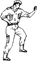 在格斗中,当你第一次就应付一个手持真刀真枪的敌人 时,你可能会意识到一旦失手就意味着死亡,这时你会感到脊 梁骨发凉,甚至全身发抖。但这也正好说明你必须接受持械格 斗训练'否则的话,后果将很难设崽。