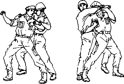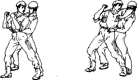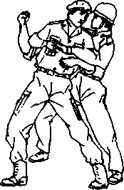 抱腰,在格斗术技术动作上可分为前拖腰后拖腰及侧抱腰其中以后抱腰为最常见。破解的方法有不少大体可分为击助踩脚面、顶头、肘击等几种下面详细分解这类动作以