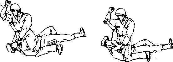 2动作要求左臂格挡快而有力击胸要连贯、准确凶狠、及时翻身骑压敌人要迅速右拳下砸要凶猛必要时可连续重击其头部当器也可抓起石块进行击打。