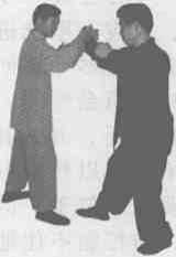 由于单推手主要追求的是点上变化,确切地说就是谋求怎样在敌 我相搭之点上控制对手.因此不主张动步,但化力、发力之际偶尔动 步,也不应视为"犯规”。