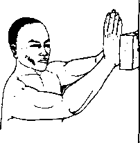 以断砖块数多少来测定推劈力量。注意,左手拿砖的一半推靠在 墙角的墙上要有力,使砖块与墙贴紧,防止右手推劈时将砖翘起。