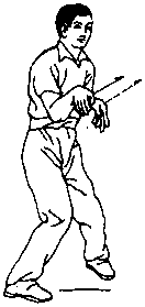 枝击要领:右掌压贴对方手臂,左章如鹤伸单翅,插其喉部。