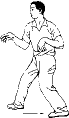 (2) 上动不停。左脚朝南上一大 步,落于右脚前40厘米处,左肩侧对