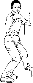 技击要领:上动如被对方抽回手臂,可进步左手推其手借,右 手括其胸腹部。